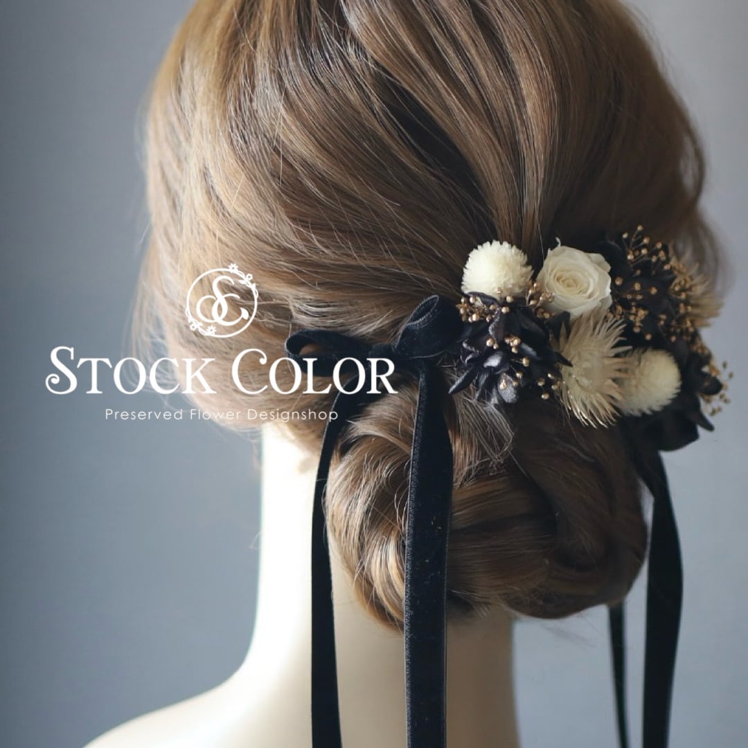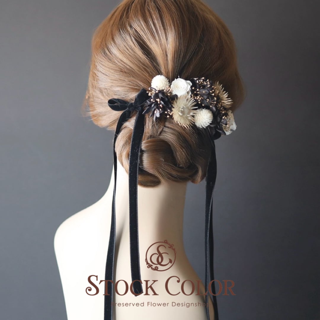 ホワイトゴールドとブラックを組み合わせた大人可愛いヘアパーツセット。リボンは高級な両面スエードを使用♪美しいシルエットが完成します。