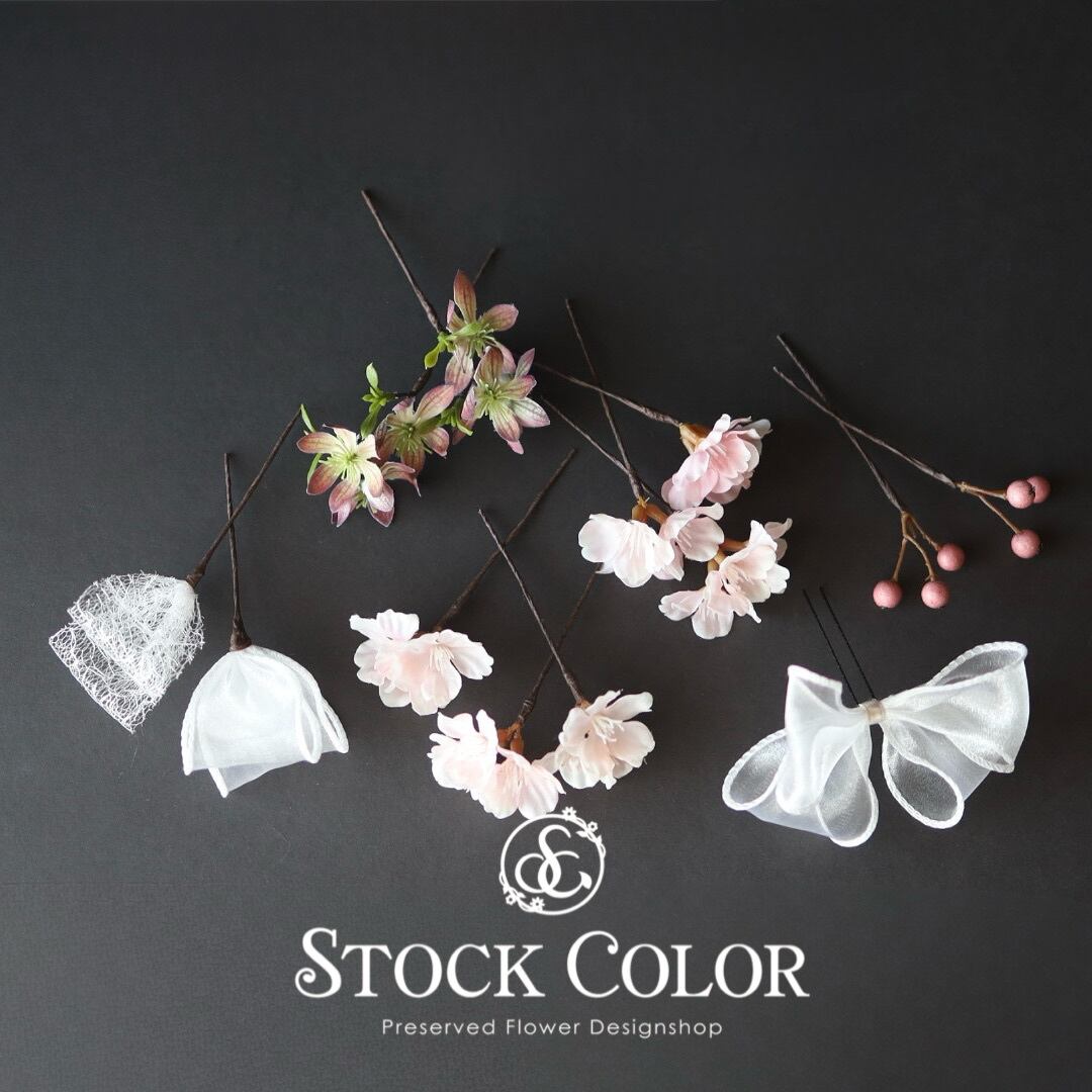 ホワイトのオーガンジーとレースリボンを、ふんわり咲いた桜と組合せたヘアパーツセットは、ウェディングドレスや白無垢、成人式や袴におすすめです♪