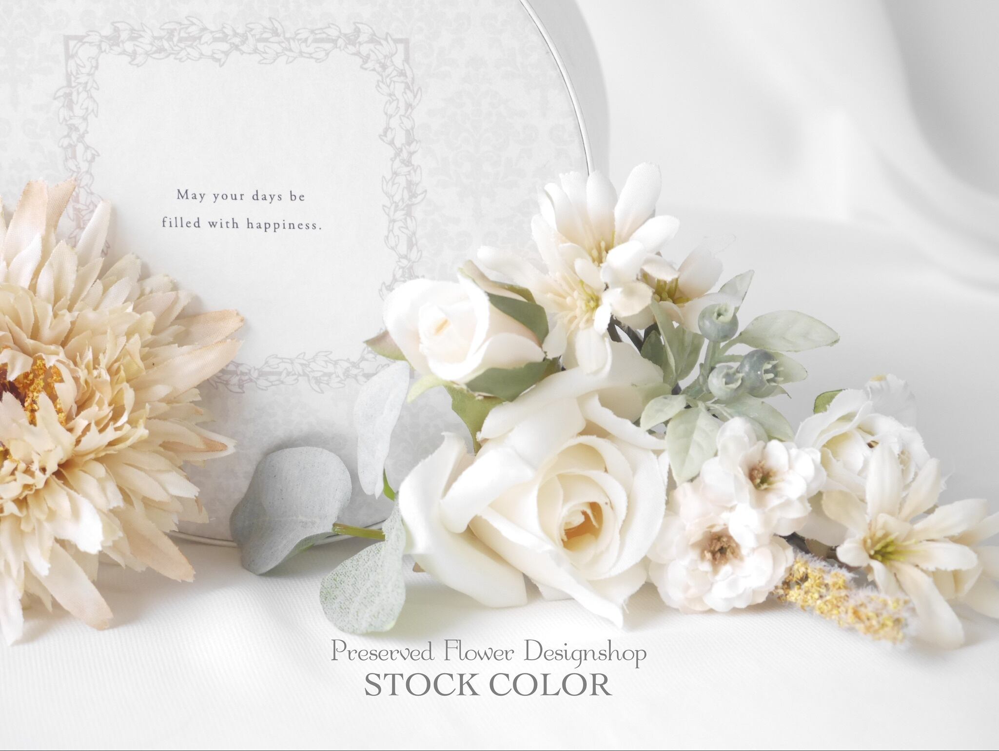 前撮りやお式当日のアレンジ、持ち運びや扱い易さなど...劣化の心配が要らないアーティフィシャルフラワーなら、安心してお使いいただけます♪